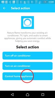 「Control home appliances」としては、事前にスマートフォンを用いて作成しておいた項目の中から必要なものを選びます。