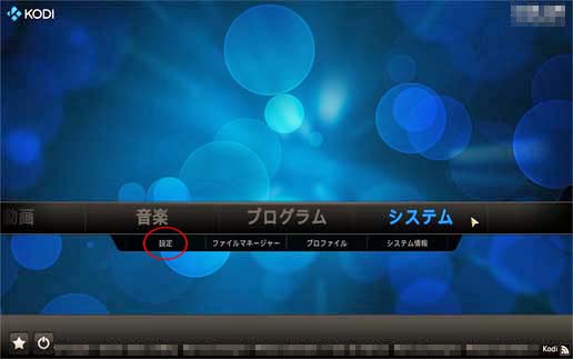 図2は既に日本語化したKodiの起動画面ですが、「システム(System)」を選んで、その中の「設定」をクリックすると図3の設定画面が表示されます。